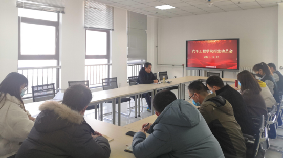 为响应学校关于2022年招生宣传工作的部署,加大招生宣传力度,调动全院职工参与热情,12月21日下午,汽车工程学院在宝福路校区汽车机电大楼206召开2022年招生动员会,全体职工参加会议,会议由汽车工程学院院长主持。