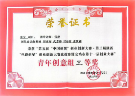 历经初赛、复赛、决赛的层层选拔,由汽车工程学院张静老师指导,押稚楠、周家好、武志伟、沃毅蒙、张庆祥团队的“废宝”项目脱颖而出,获得本次大赛青年创意组三等奖。