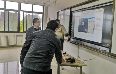 由于汽车工程学院实训室一体机安装时间较早,系统软件陈旧,不能满足线上线下同时教学的硬件软件要求,15日-16日张晓伟、张超龙、谭飞、李月阳四名教师对实训室一体机进行了系统升级并安装了QQ、腾讯会议等软件,通过对一体机加装摄像头满足了一体机线上直播的硬件要求。