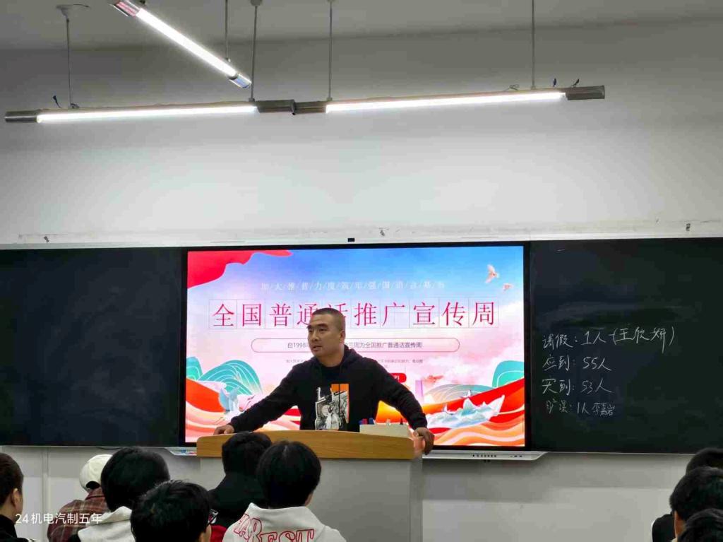 活动中,各班级精心组织,通过播放《建国大业》《朗读者》等经典影视作品,让学生在感受语言艺术魅力的同时,体会普通话在传递思想、弘扬文化、增进交流中的独特价值。同学们围绕普通话在学业发展、就业选择和人际交往中的实际作用展开热烈讨论,进一步增强了规范使用国家通用语言文字的意识。