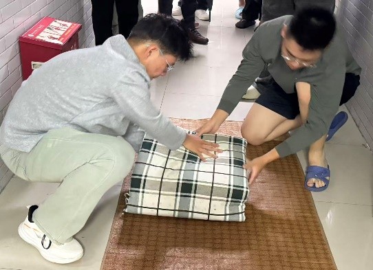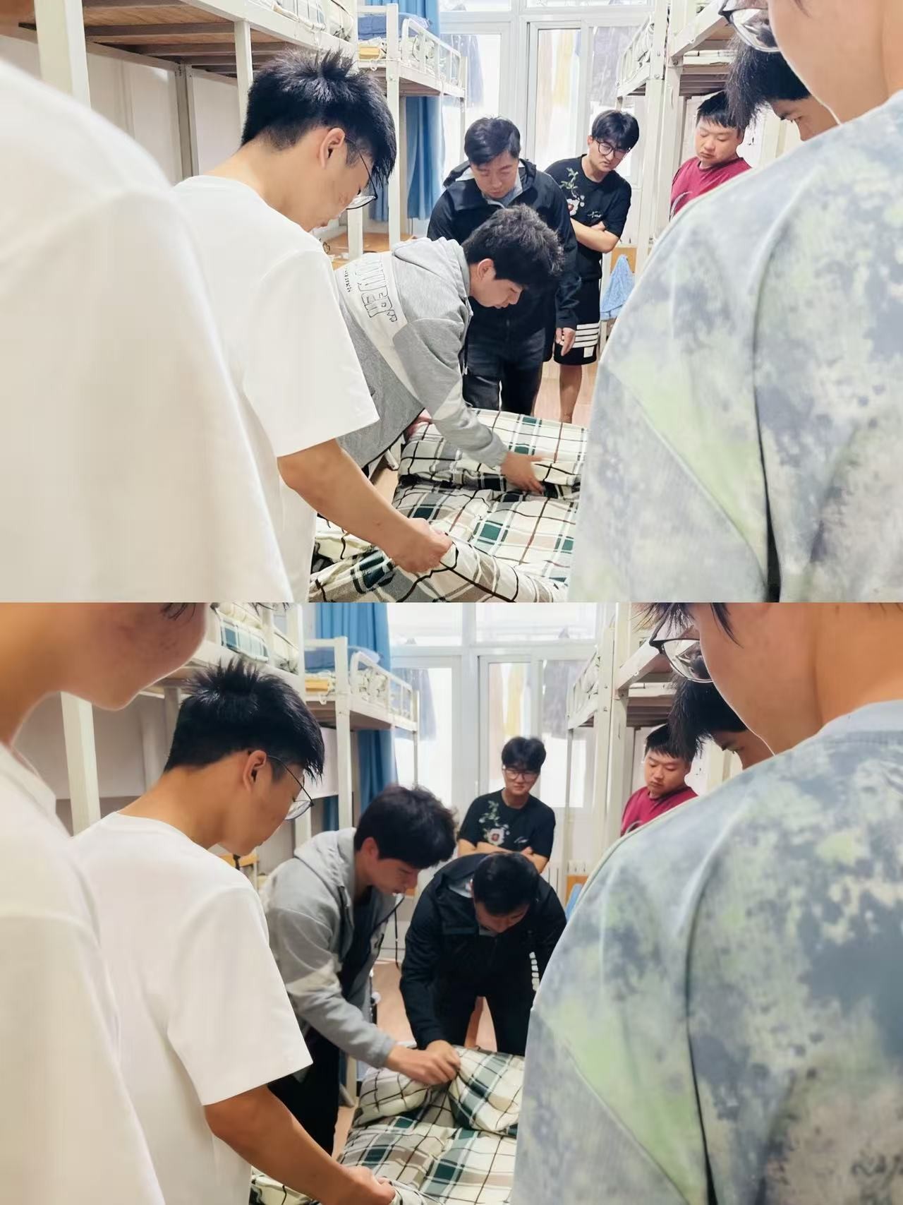 在活动现场,王书记与辅导员深入宿舍,亲自示范“豆腐块”被褥的叠法、书桌物品的收纳方式及用电规范操作,并结合实际案例,详细讲解宿舍文明建设的重要意义和具体要求。他强调,宿舍不仅是学生学习生活的重要阵地,更是展现精神风貌的重要窗口。整洁有序的环境关乎个人健康与安全,也体现着集体的文明风尚,希望同学们从点滴做起,以细节见精神,养成良好习惯,共同营造积极向上的校园氛围。