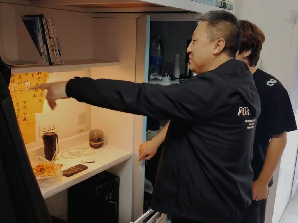 为进一步加强和提升学生宿舍的管理水平,积极营造一个整洁、舒适且安全的居住环境,10月30日,由交通运输学院院长李靖、辅导员李月阳等组成师生团队一同深入学生宿舍开展了一次全面而细致的宿舍卫生大检查活动。