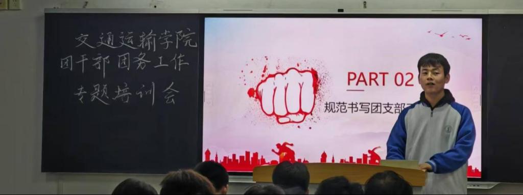 新血液,新活力,新征程。10月21日晚,交通运输学院团总支组织2023、2024级各班团干部,在教学楼309教室召开“团干部团务工作”专题培训会,会议由组织宣传部负责人焦东亮主持,团总支副书记曹军霞出席会议。