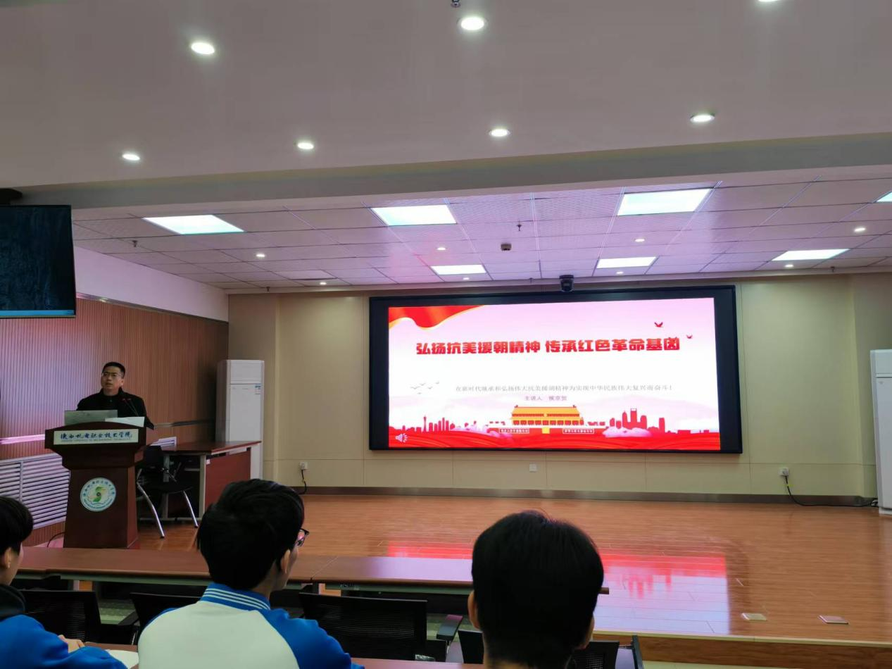 侯京贺指出,抗美援朝精神是中华民族极其宝贵精神财富,在当今时代依然有着强大的激励作用,鼓励同学们要将这种精神融入到日常学习和生活中,勇于面对困难与挑战,努力提升自我专业技能和综合素质,自觉将个人成长与祖国发展相结合,与祖国“同呼吸,共命运”,为实现中华民族伟大复兴贡献自己的力量。