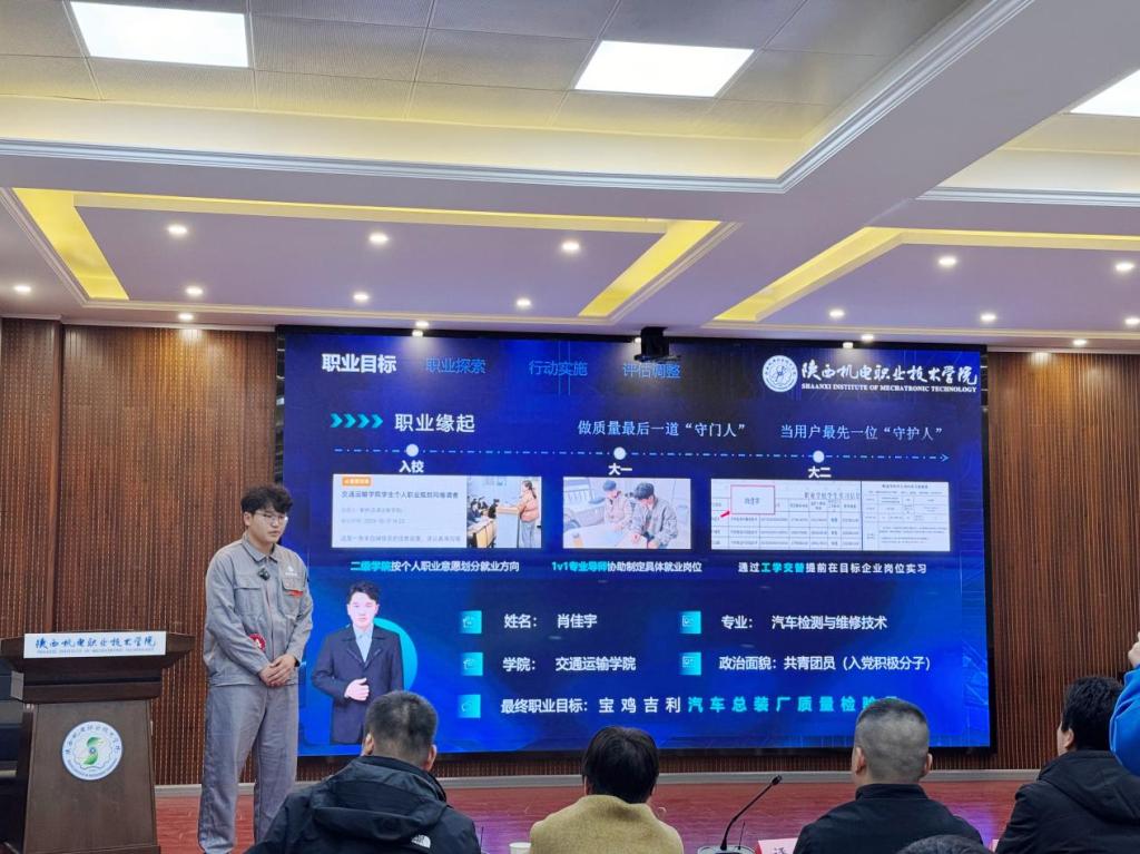 12月9日,陕西机电职业技术学院第三届大学生职业生涯规划大赛圆满落幕,交通运输学院5名参赛学子在决赛中表现亮眼,凭借清晰的职业定位与扎实的规划方案,最终斩获成长赛道一等奖2项、二等奖1项、三等奖2项——24智联汽车班韩凯杰、24汽车检测2班肖佳宇荣获一等奖,24新能源4班王学良荣获二等奖,24新能源1班惠欣怡、24新能源4班揣永帅荣获三等奖,学院荣获优秀组织奖。